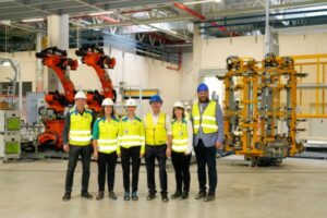 Wirtschaftsminister Aiwanger besichtigt Neubau des BMW Group Montagewerks für Hochvoltbatterie Aiwanger: „Die Investition von BMW ist ein klares Bekenntnis für den Standort Bayern und ein wichtiger Impuls für die Region“ Wirtschaftsminister Hubert Aiwanger besichtigt die Baustelle des Batteriemontagewerks und tauscht sich mit den Verantwortlichen aus. V.l.n.r: Christian Weitl (Projektleiter Realisierung Bau BMW Group Werk Irlbach Straßkirchen), Sylvia Meyer (Projektleiterin Bau, Facility Management und Sicherheit BMW Group Werk Irlbach Straßkirchen), Sabrina Kugler Gesamtprojektleiterin für den Werkaufbau BMW Group Werk Irlbach Straßkirchen), Wirtschaftsminister Hubert Aiwanger, Christin Böttcher (Leiterin Planung und Realisierung der Industrialisierung BMW Group Werk Irlbach Straßkirchen), Tobias Beck (MdL).